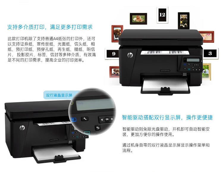 惠普 M126nw 黑白激光无线多功能家用打印机