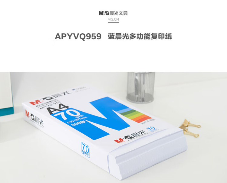 晨光 A4纸打印复印纸70g木浆500张蓝晨光单包草稿纸画画用打印纸APYVQ959A
