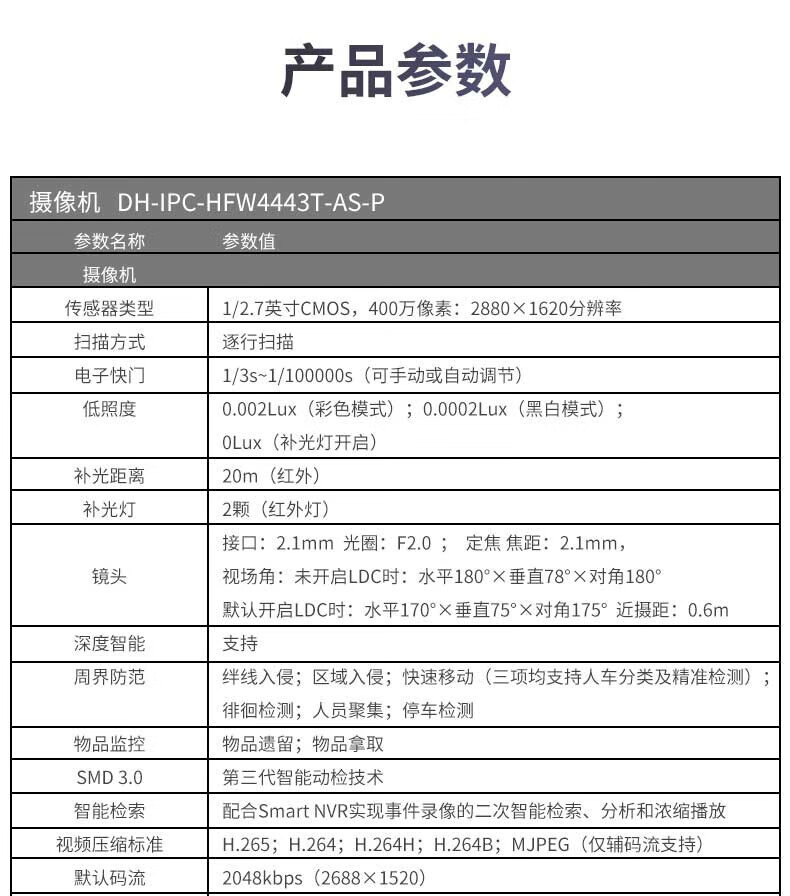 大华摄像头监控400万星光级poe录音监控器DH-IPC-HFW4443T-AS-P