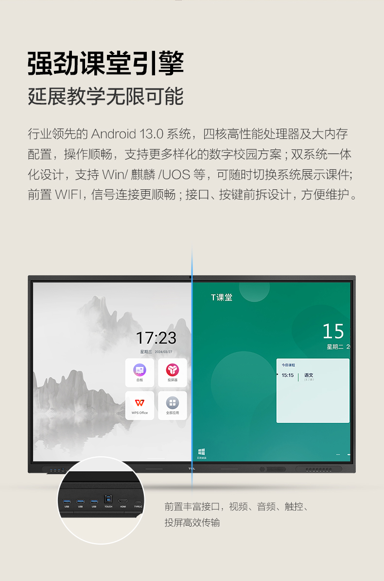 TCL智能交互平板智能电子白板视频多媒体培训触摸显示大屏 75英寸 IFP75X60M