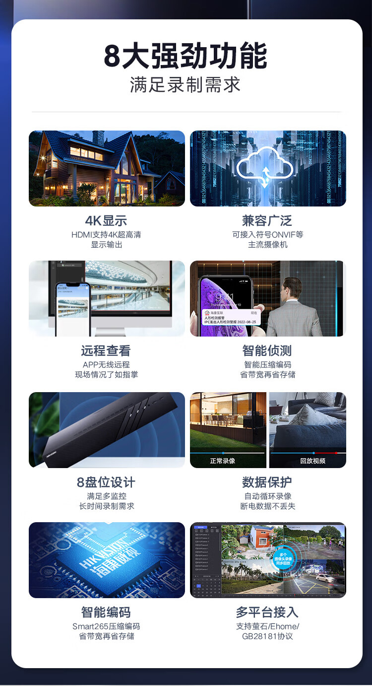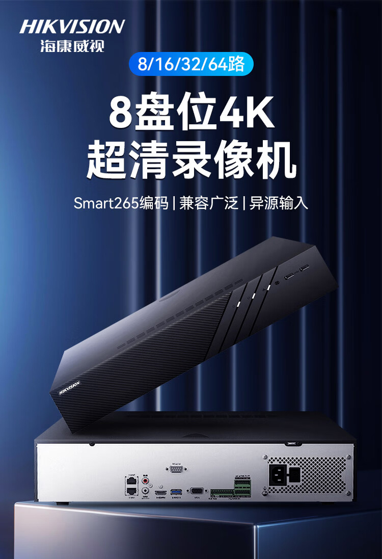 海康威视R系列高性能8盘位32路录像机4K超清监控主机NVR手机远程DS-8832N-R8