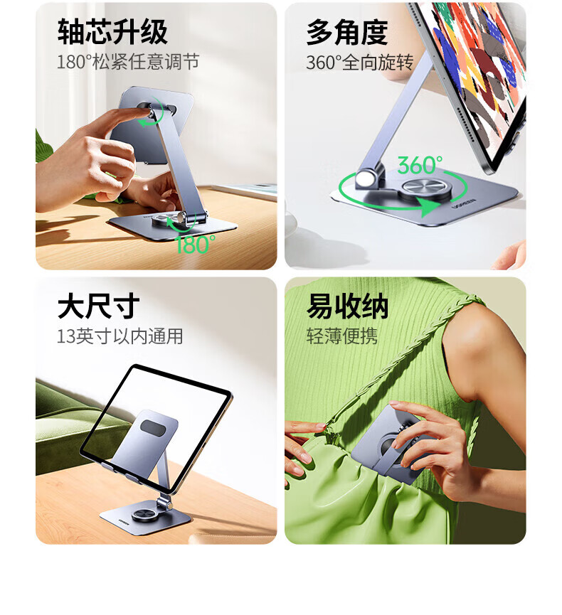 绿联平板支架 ipad手机支架桌面360°多功能旋转折叠支架45857【手机通用】