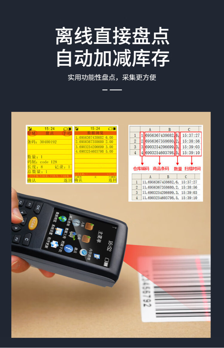 科密 A8盘点机无线扫描枪超市pda手持终端扫码枪数据采集器可存储20万条数据支持多软件