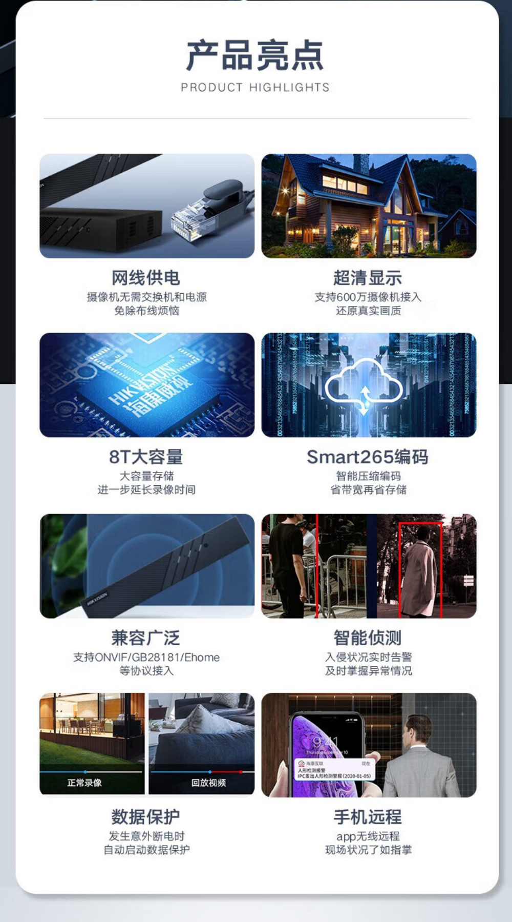 海康威视DS-7808N-Q1/8P网络硬盘录像机监控NVR高清监控主机录像机(无硬盘)