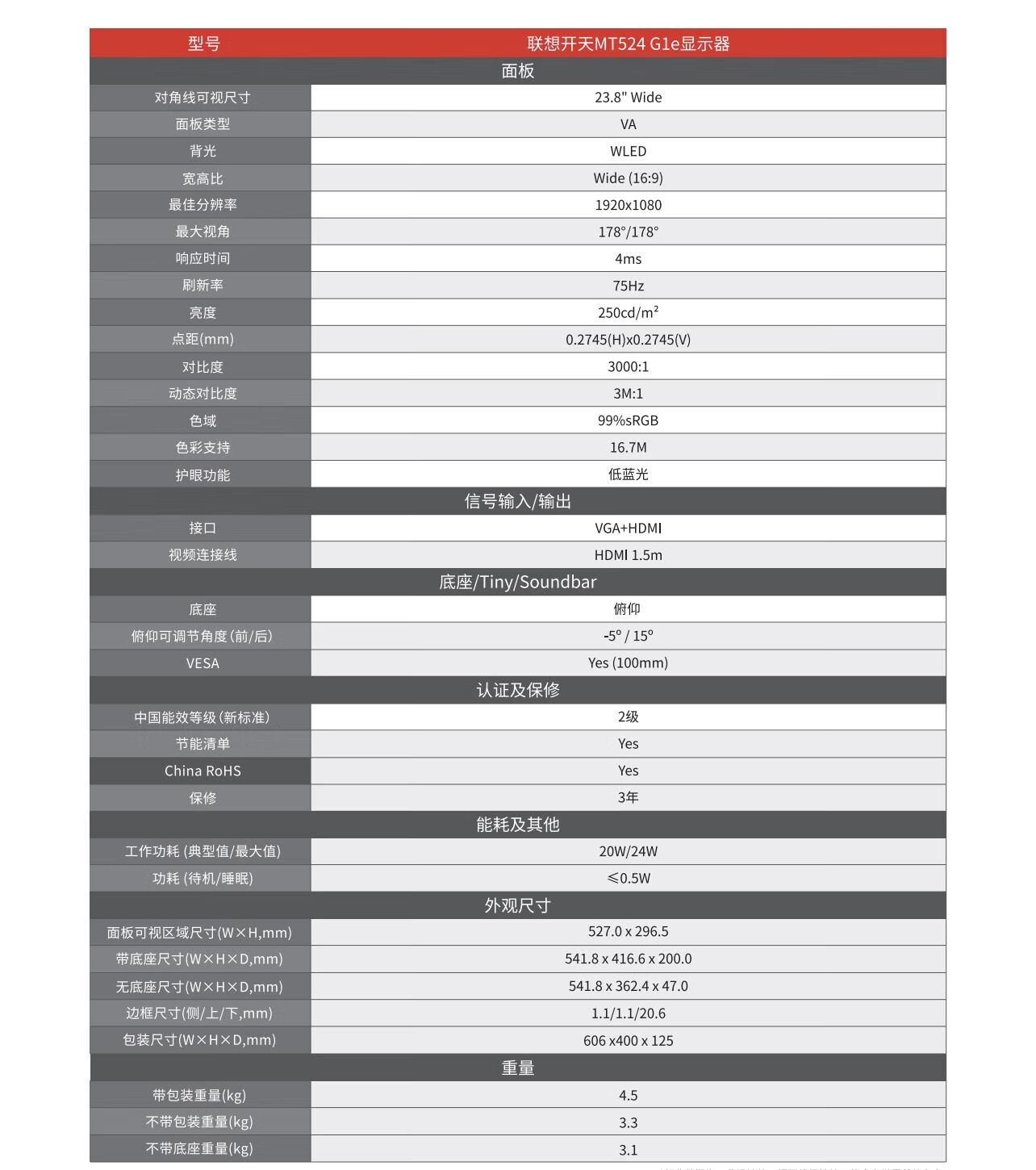 联想/LENOVO 开天 MT524 G1e 显示屏