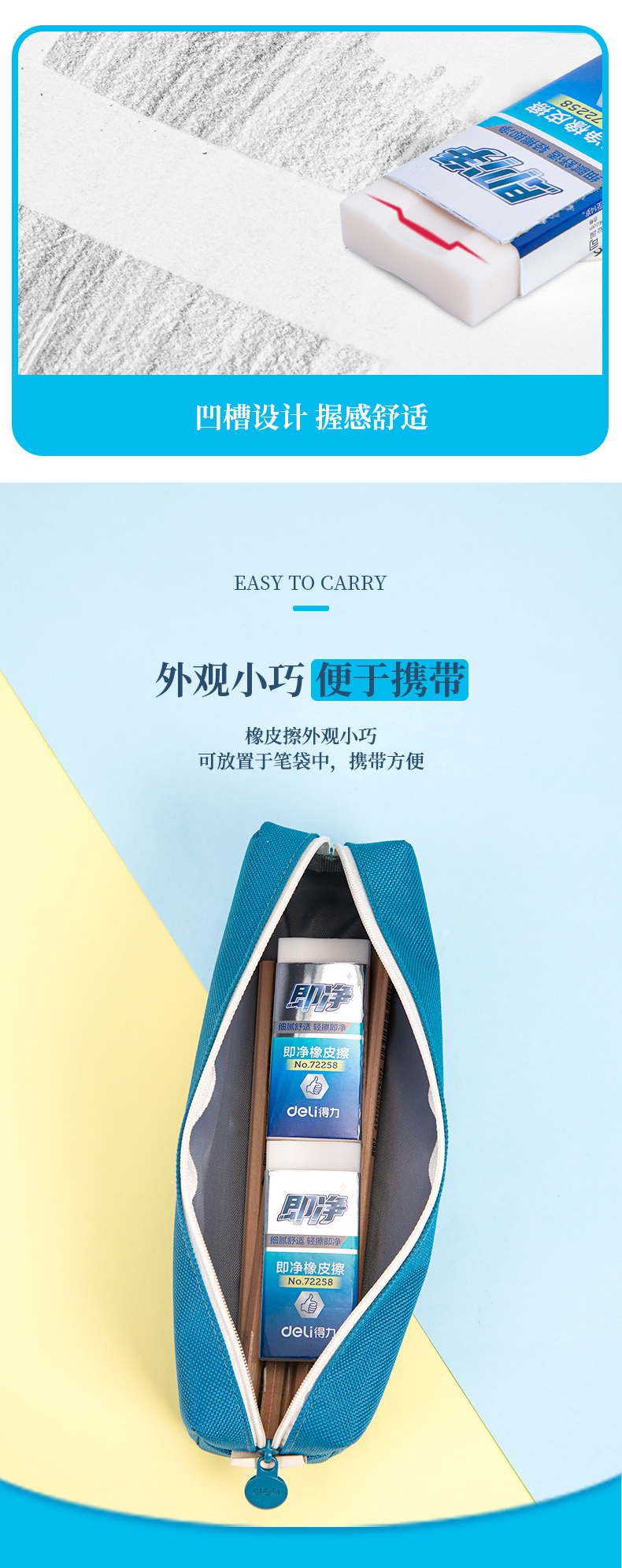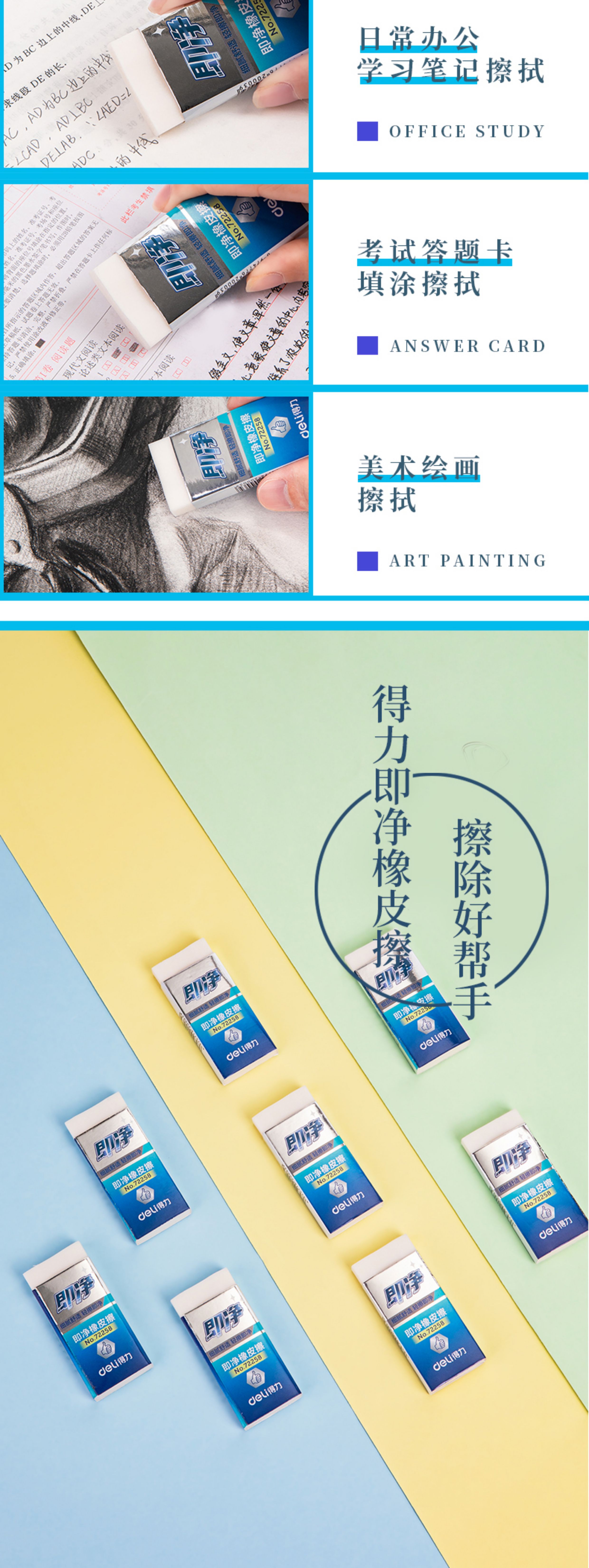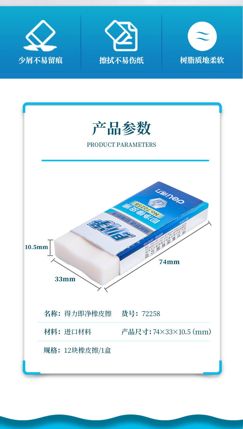 得力 72258 擦得干净 铅笔橡皮擦 大号1块