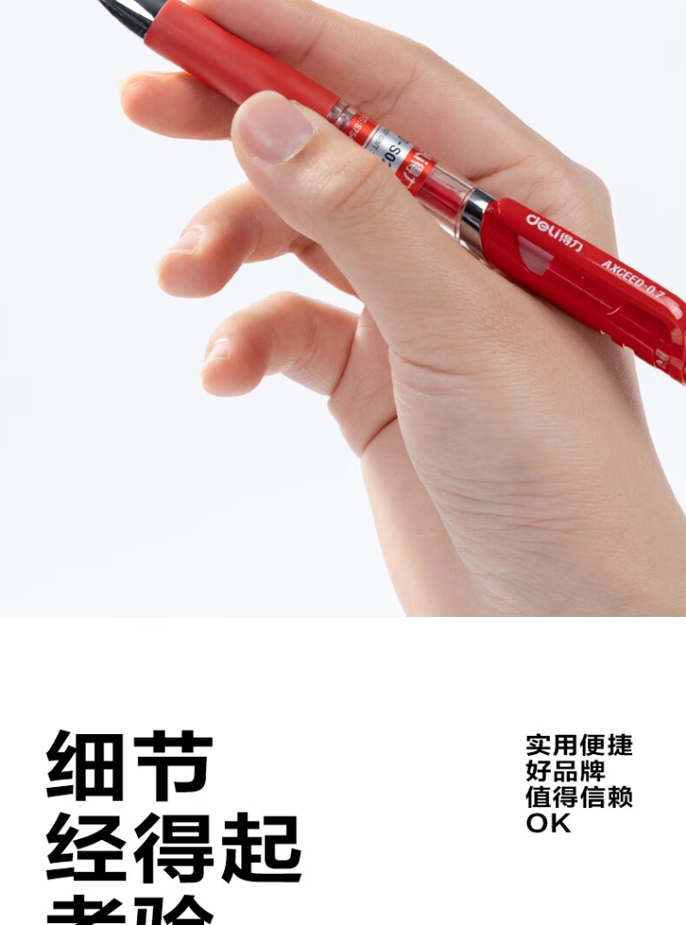 得力 0.7mm子弹头按动笔水笔 12支/盒 S02 红色