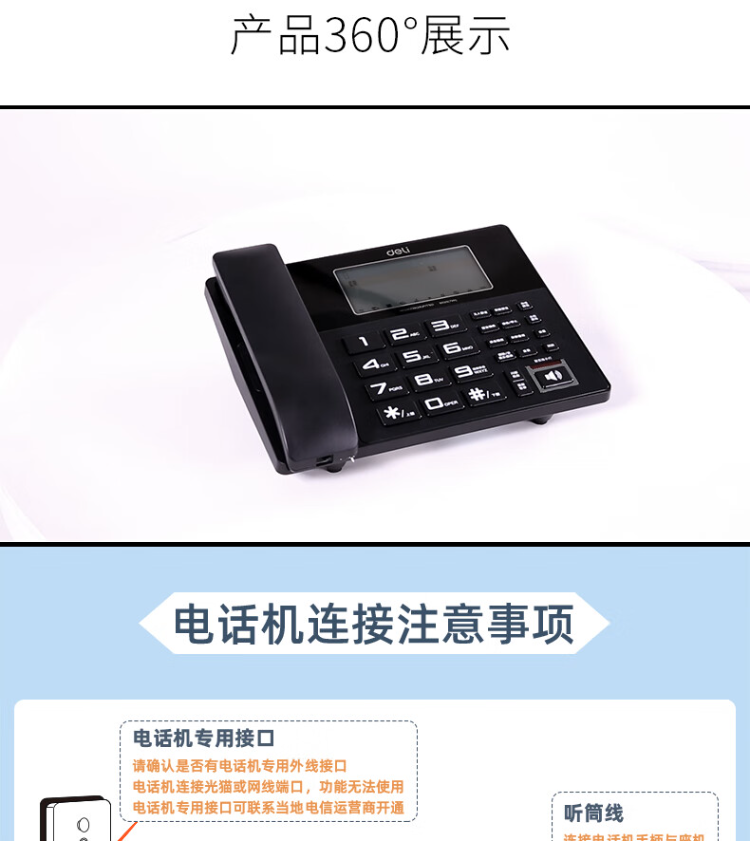 得力 录音电话机 固定座机来电显示 4G内存卡 799 黑