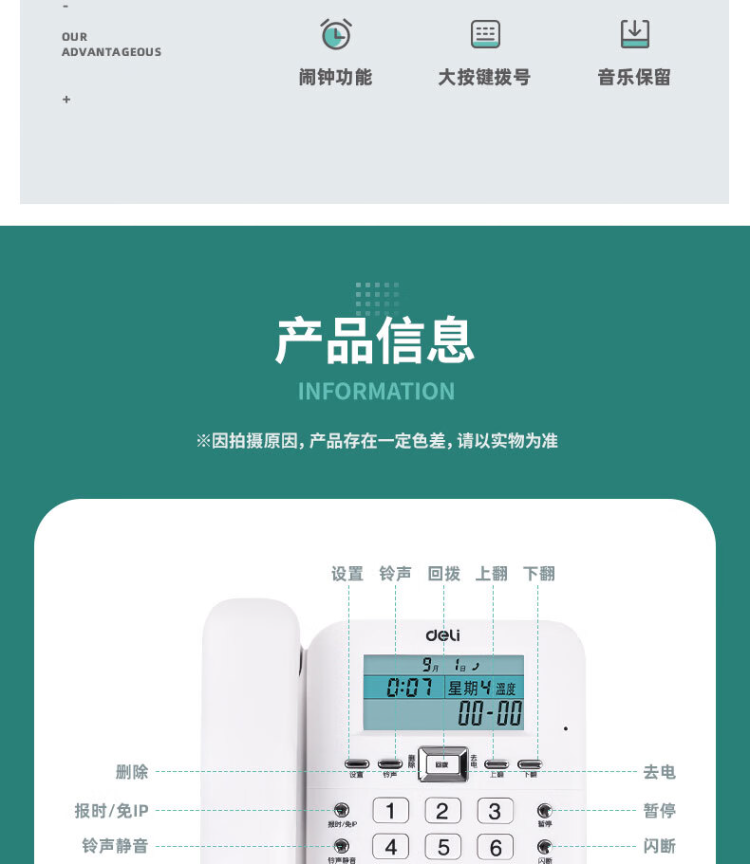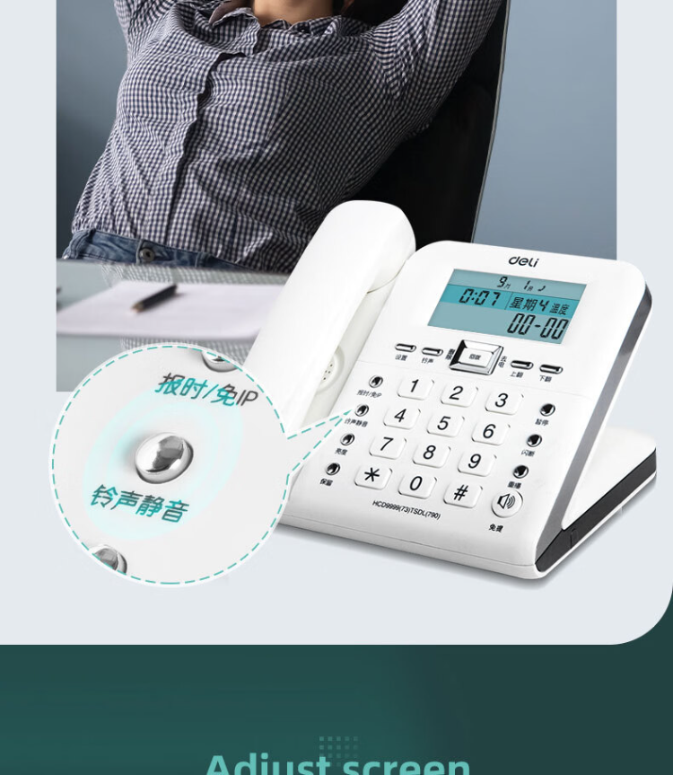 得力电话机座机 固定电话 办公家用 38°倾角 来电显示 790白色
