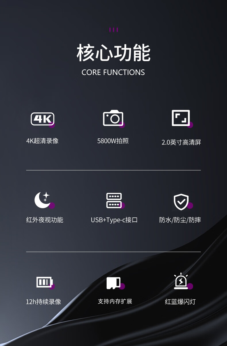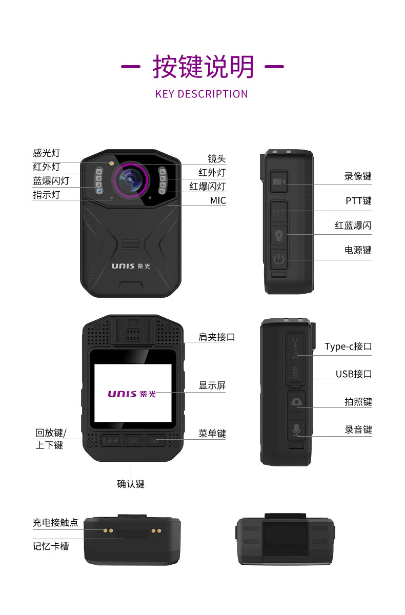 紫光 DSJ-UD3A1 执法记录仪 4K红蓝爆闪音视频工作记录仪32G