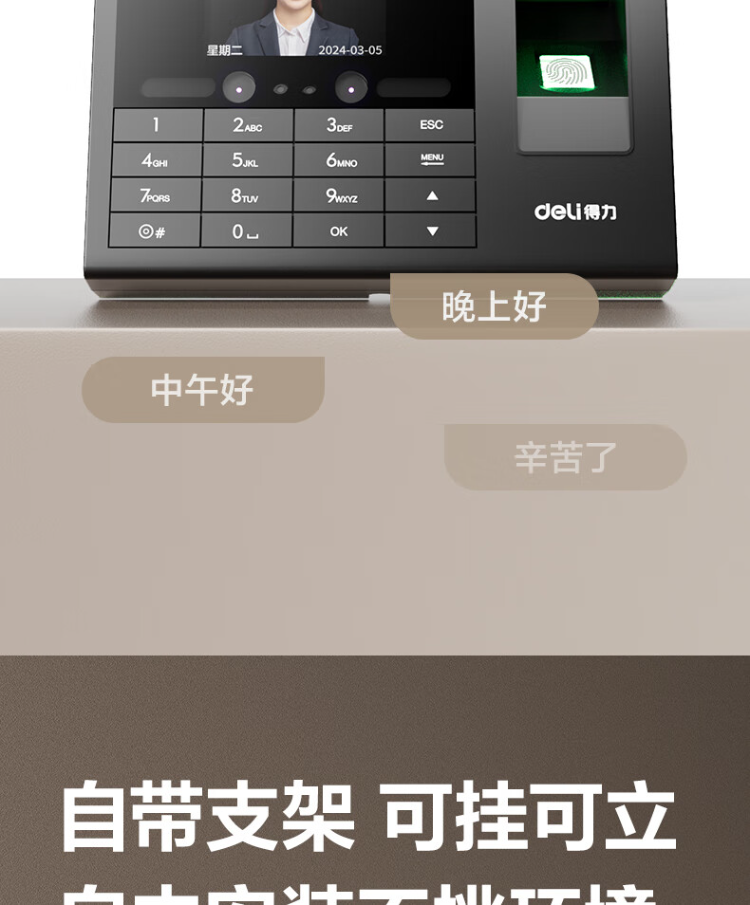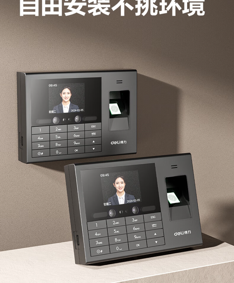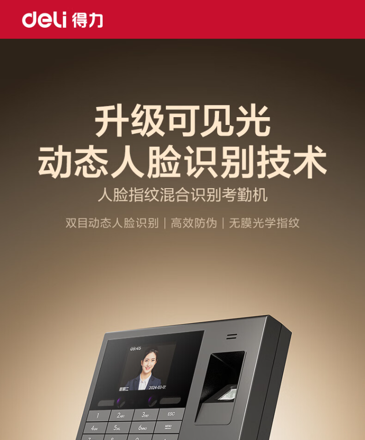 得力智能考勤机 动态人脸 打卡机人脸+指纹识别 33868PRO