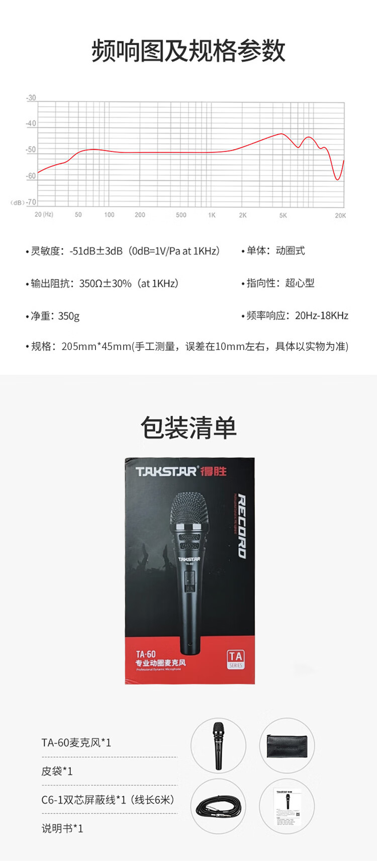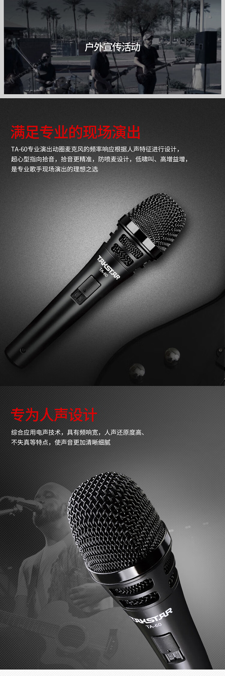 得胜 TA-60 有线动圈麦克风 专业演出唱歌话筒 录音会议主持麦克风 黑色