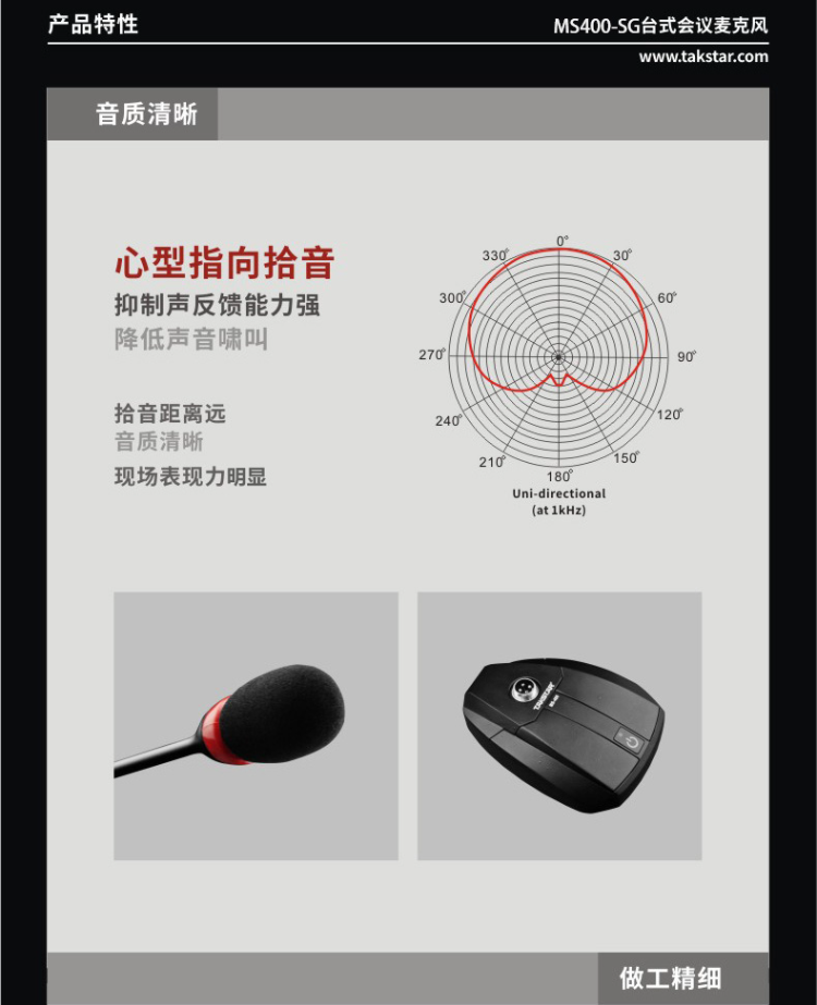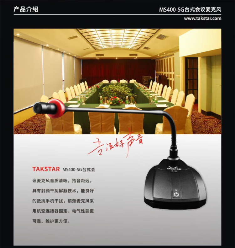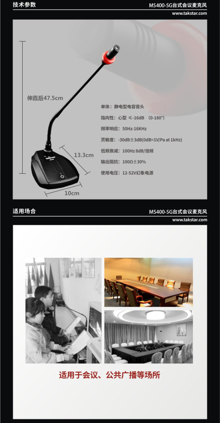 得胜 MS400SG 会议麦克风会议专用 有线电容话筒教学会议讲解 黑色