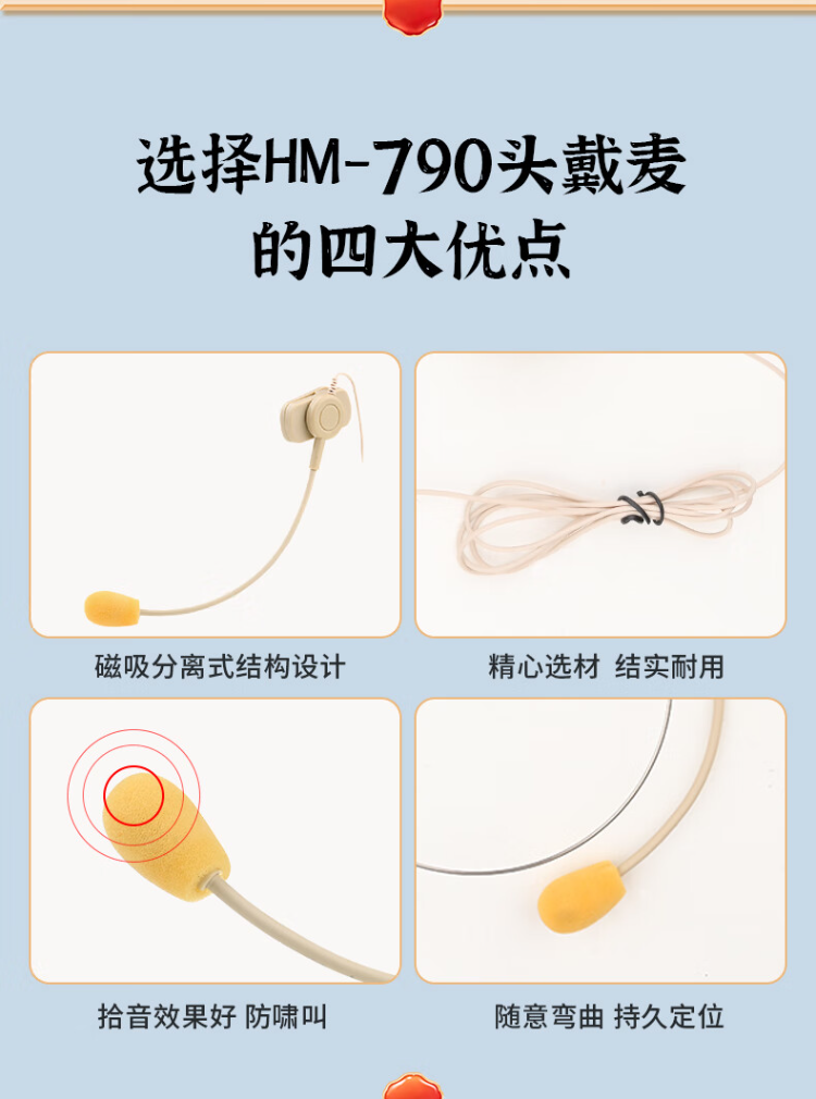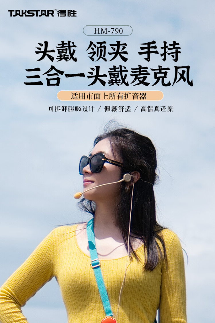 得胜 HM-790 可拆卸有线麦克风 可头戴领夹手持 3合1 小蜜蜂有线耳麦扩音器专用