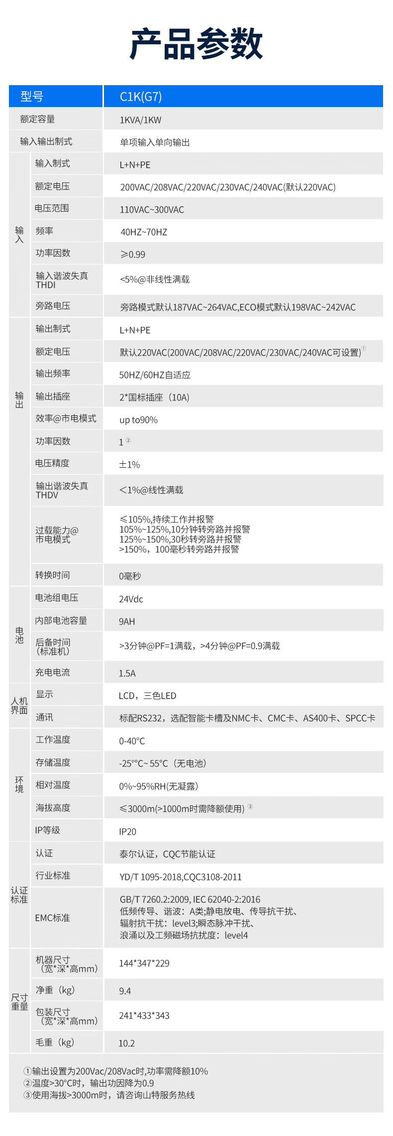 山特 C1K 在线式UPS不间断电源1000VA/1000W 稳压服务器机房电脑