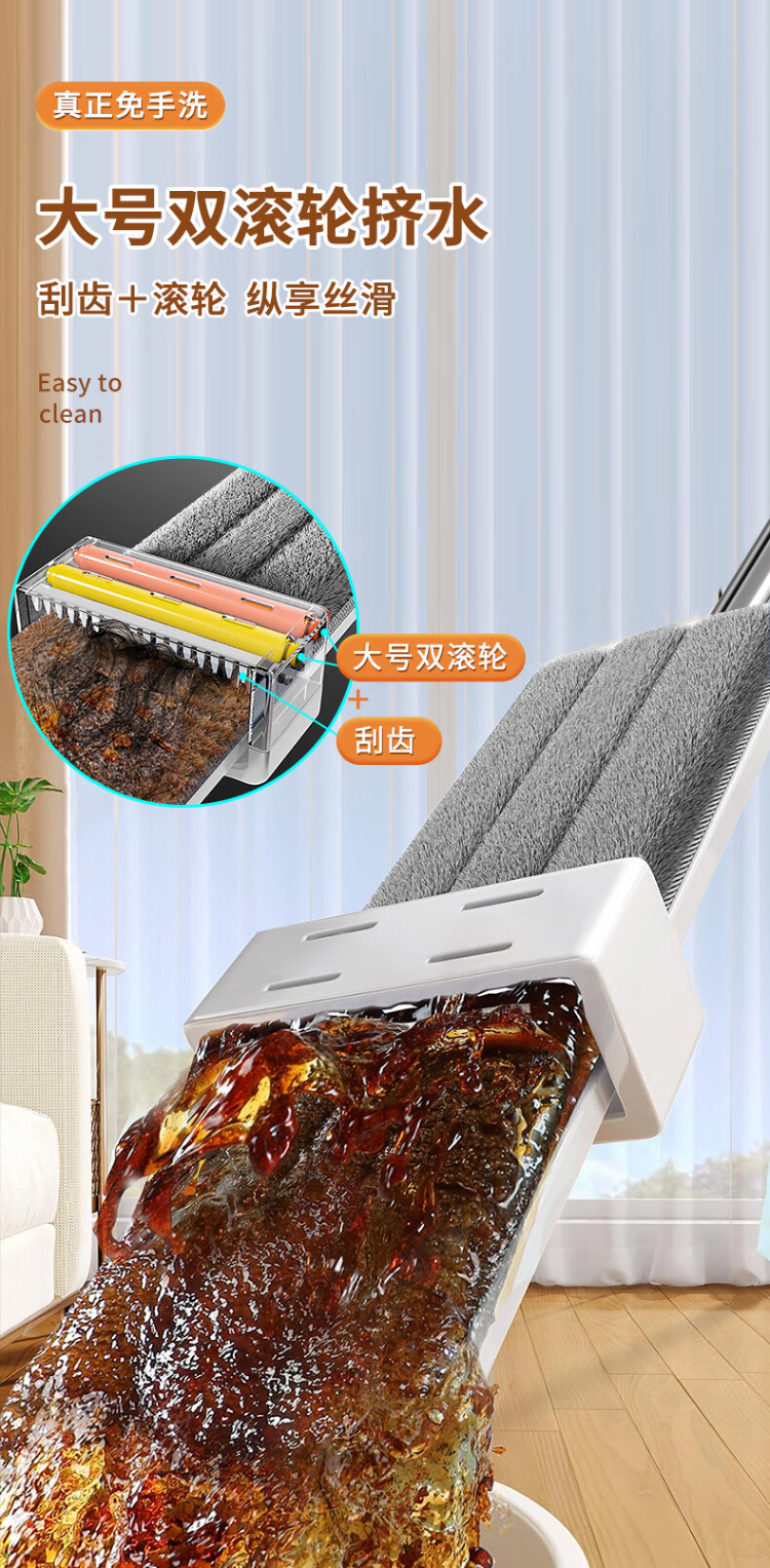佳帮手平板拖把 【39cm+4布】一推免手洗 JBS-PBTB-202-JGY4P
