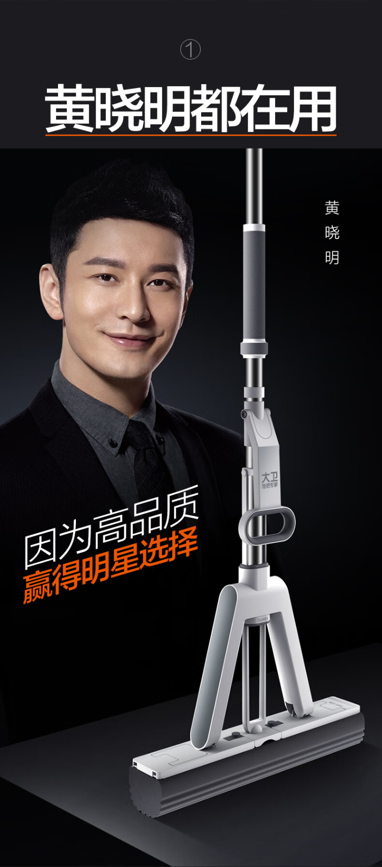 大卫胶棉拖把38cm海绵头杆长140cm 2头 M16 PVA胶棉对折挤水