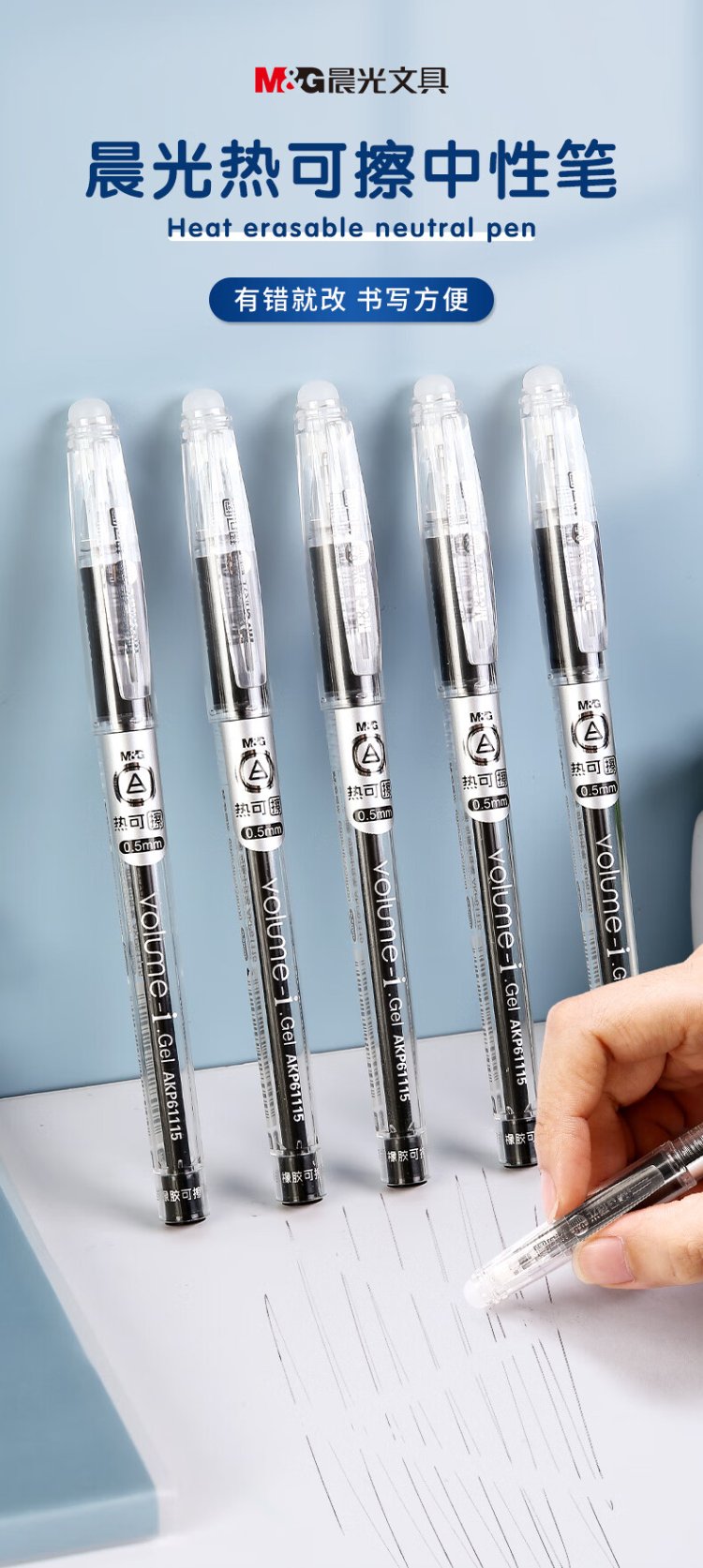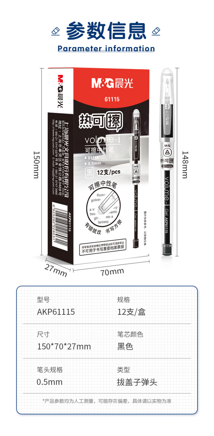 晨光 热可擦中性笔 简约拔盖子弹头黑色水笔0.5mm 12支/盒AKP61115A